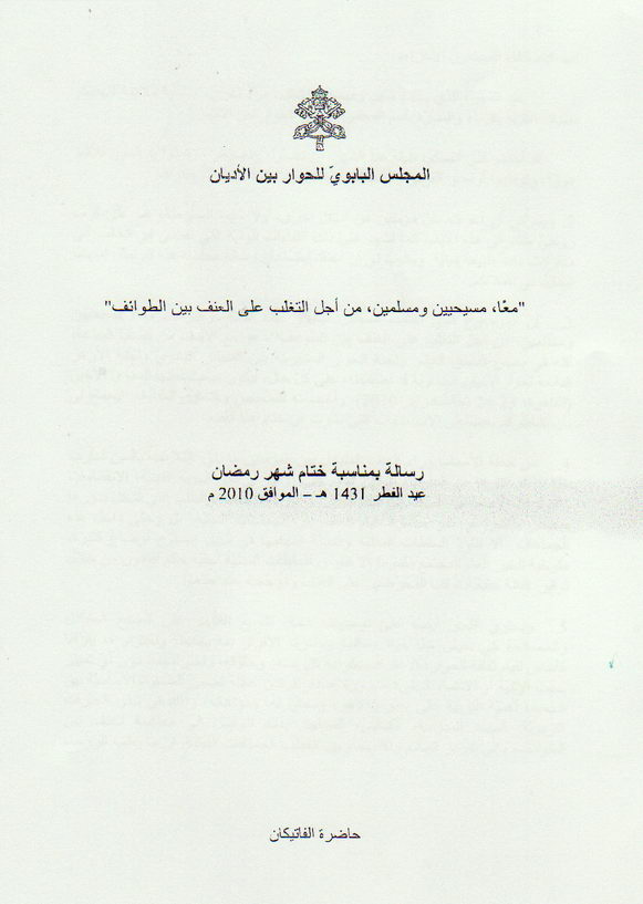 رئيس المجلس الحبري للحوار بين الأديان (الكاردينال جان لويس توران) يهنيء العالم الإسلامي بمناسبة إنتهاء شهر رمضان وحلول عيد الفطر المبارك