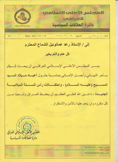 كتب تهاني بمناسبة أعياد الميلاد ورأس السنة الميلادية الجديدة 2012