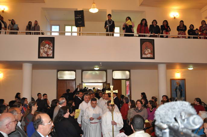 البركة لجميع الحاضرين ثم توجهوا الى قاعة الكنيسة حيث هناك
