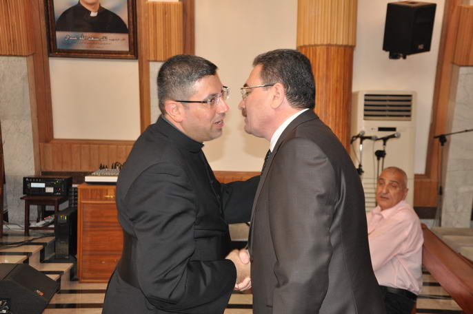 عبا والاب نبيل ياكو وفي نهاية القداس قدم كجةجي تهانيه لسيادة