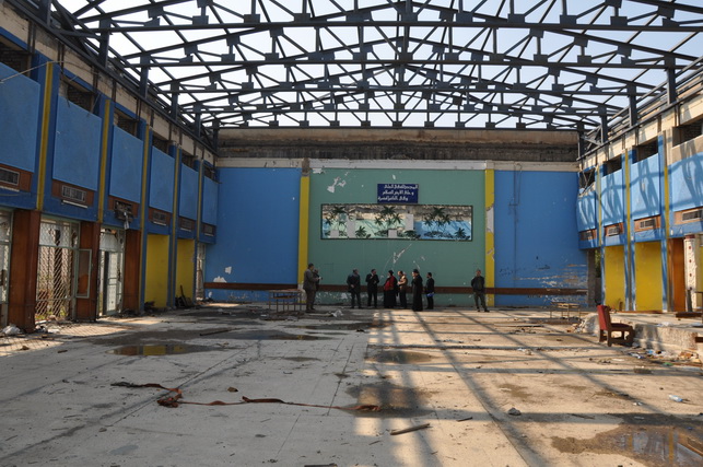 الاطلاع على المراحل التي وصل اليها اعمال سقف القاعة.