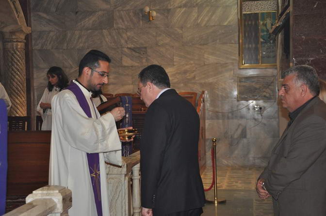 التعازي لكنيسة مريم العذراء حيث استقبلهم الاب صليوا عزيز