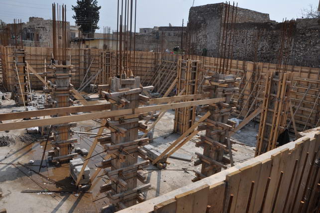 واطلع على اعمال الجارية في الموقع والتي تتضمن صب الاعمدة