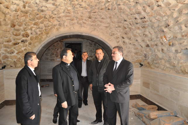 توجه الوفد لزيارة مشروع ترميم دير مار اوراها وتفقد الاعمال