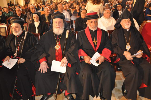 قداسة البطريرك والسادة الاساقفة الحاضرين واحدا واحدا ومعالي