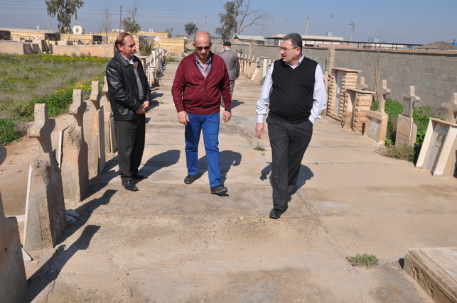 استهل الوفد زيارته بتفقد مقبرة الكلدان واطلع على الاعمال