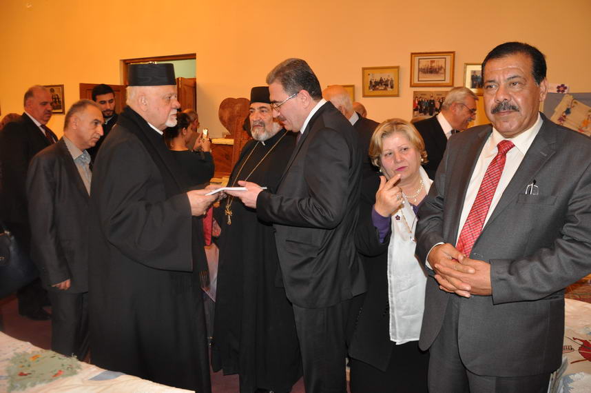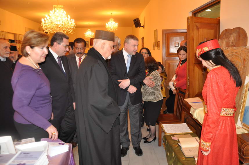برعاية سيادة المطران افاك اسادوريان رئيس طائفة الارمن الارثوذكس في العراق وبأشراف اللجنة المركزية لأحياء الذكرى المئوية للابادة الجماعية الارمنية حضر رئيس ديوان اوقاف الديانات المسيحية والايزيدية والصابئة المندائية السيد رعد كجةجي مساء الاحد 8 اذار 2015 معرض للاعمال اليدوية الذي اقامته الجمعية الثقافية لنساء الارمن في العراق في دار المسنين للارمن الارثوذكس/كمب سارة وحضر الافتتاح عدد من الاباء الكهنة من مختلف الطوائف المسيحية والسفير الارمني في العراق السيد كارين كريكوريان ومدير عام الدائرة الادارية والمالية /وكالة كربيت ميناسكان أرميناك وعضو لجنة التربية والتعليم في مجلس محافظة بغداد.