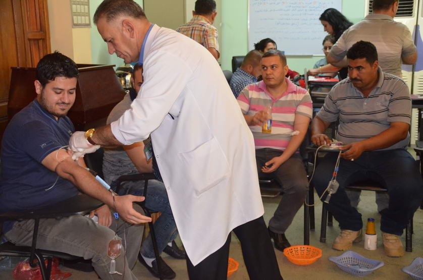 بمبادرة لم تكن الاولى من نوعها قام منتسبو الديوان يوم الاربعاء الموافق 20/5/2015 بحملة التبرع بالدم اسوة بباقي ابناء شعبنا العزيز حيث شارك العشرات من ابناء الديوان يتقدمهم السيد رعد جليل كجه جي رئيس الديوان والمدراء العامين حيث ارادوا ان يشاركوا ولو بدمائهم لدعم ابطالنا في الجيش والحشد الشعبي الذين ينزفون الدماء في سبيل هذا الوطن الغالي من هجمة الشر والتخلف التي تقودها مجموعات داعش الاجرامية.