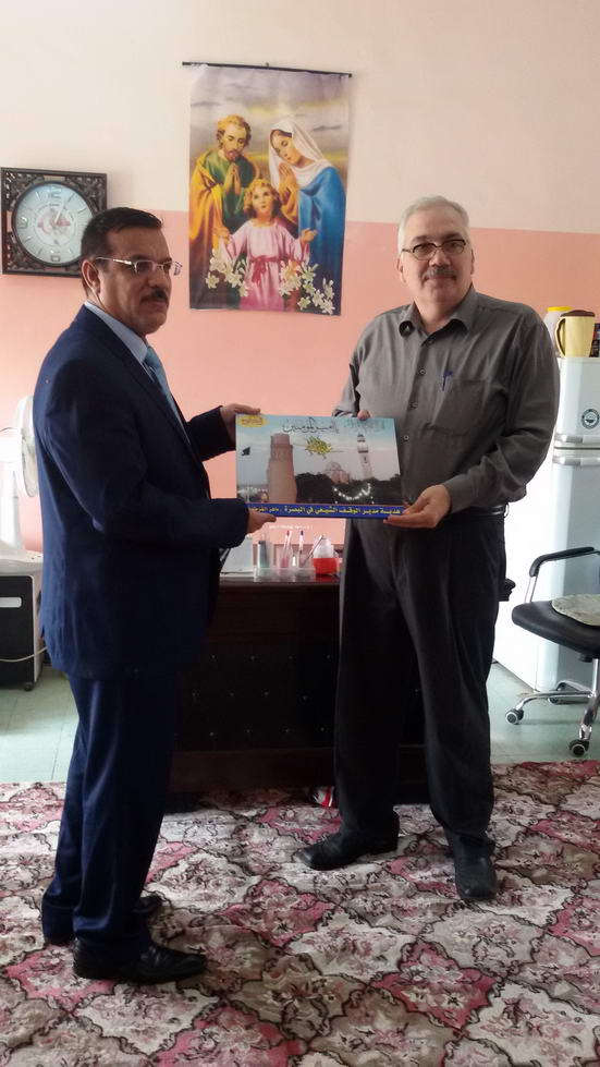 زار مدير الوقف الشيعي في البصرة السيد ماهر فرطوسي صباح الخميس 19 تشرين الثاني ممثلية الديوان في البصرة/ شعبة شؤون المسيحيين حيث كان باستقباله مدير شعبة شؤون المسيحيين المهندس خالد البير جيمس.