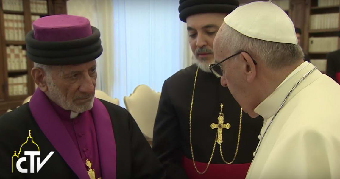 استقبل البابا فرنسيس صباح اليوم الخميس في الفاتيكان بطريرك كنيسة المشرق الآشورية مار كيوركيس الثالث، ووجه له كلمة استهلها معبرا له عن سروره للقائه بالقرب من ضريح القديس بطرس ومحييا أساقفة وكهنة ومؤمني هذه الكنيسة. وأكد البابا أن الكنيستين رفعتا اليوم الصلاة المشتركة إلى الرب من أجل ابتهال عطية السلام، خصوصا إزاء القلق الناجم عن التطورات الراهنة في الشرق الأوسط، لاسيما في كل من سورية والعراق.