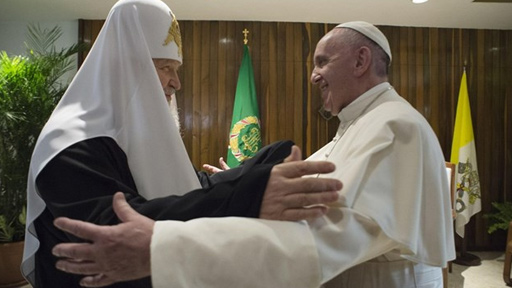 لقاء تاريخي بين أخوين. هذا ما رأيناه اليوم في العناق بين البابا فرنسيس وكيريل بطريرك موسكو وسائر روسيا في مطار خوسيه مارتي في هافانا في كوبا. لقاء خاص دام لمدّة ساعتين تمّ خلاله تبادل الهدايا وتوقيع إعلان مشترك بين البابا فرنسيس والبطريرك كيريل. وفي ختام اللقاء استقلّ الأب الأقدس طائرته متابعًا سفره إلى المكسيك.