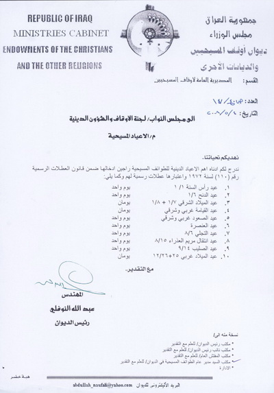 سعي ومحاولات ديوان أوقاف المسيحيين والديانات الاخرى لإدراج