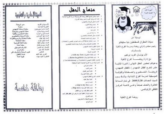 التحضيري والحضانة والفرقة الموسيقية لمدرسة الفرح الابتدائية.