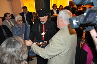 بعدها أهدى رئيس الديوان الى غبطة البطريرك هدية تذكارية