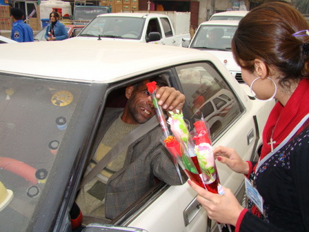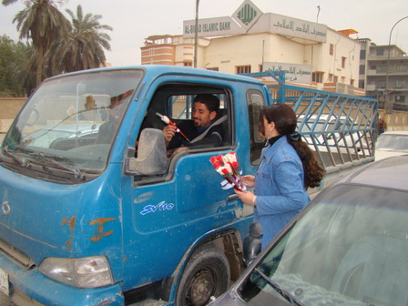 ورد في الساحات والشوارع العامة على مختلف اطياف الشعب