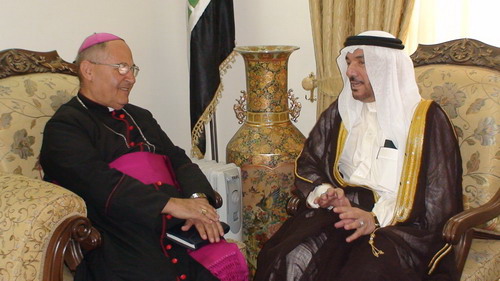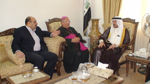 وقد حضر اللقاء سيادة المطران شليمون وردوني النائب البطريركي للطائفة الكلدانية والذي كان في زيارة عمل في الديوان. وتطرق الجانبان الى العلاقات الاخوية التي تربط بين اطياف الشعب العراقي كافة. مستذكرين المواقف التأريخية التي وقفت بها كل اطياف الشعب العراقي مجتمعة لتجاوز المحن والصعوبات الي كانت تمر على الوطن. وقد اعرب الوفد الزائر عن تضامنه ووقوفه الى جانب العوائل المهجرة والطائفة المسيحية في العراق ومؤكدا على العلاقات الطيبة التي تربط كل مكونات الشعب العراقي.