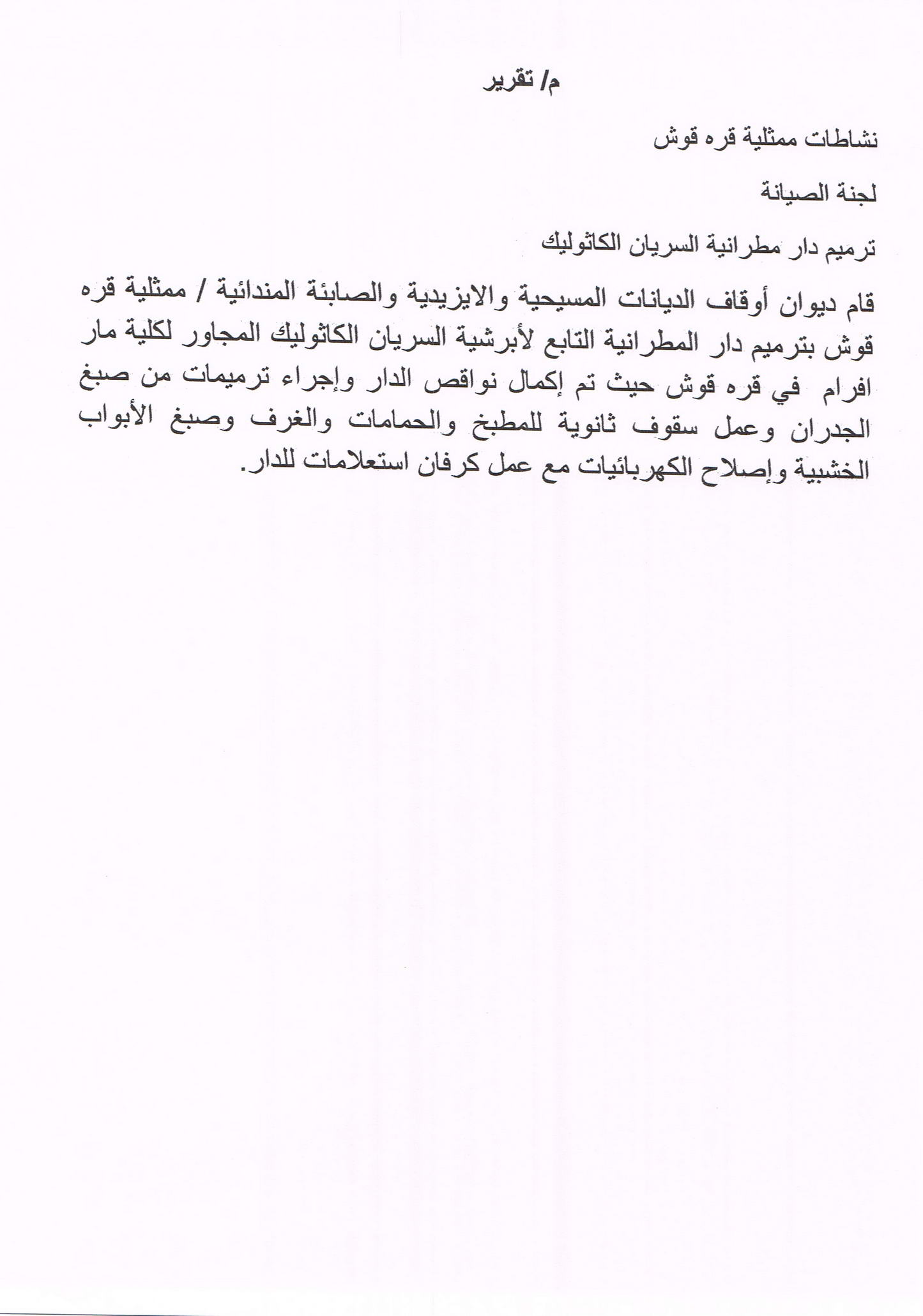 دار مطرانية الكلدان/قره قوش:- اضغط للذهاب الى الصور