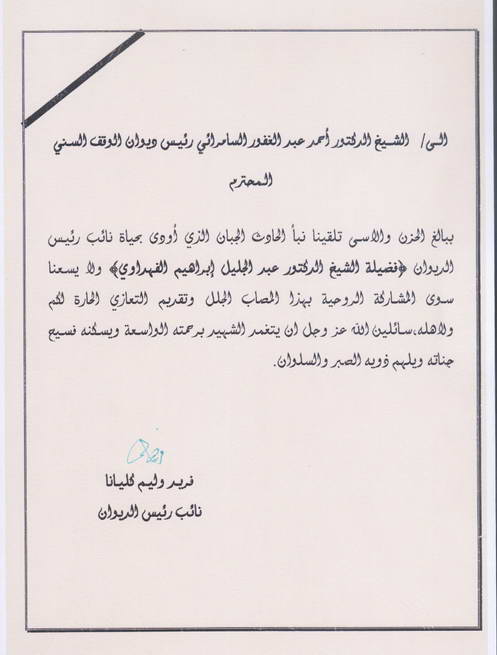 عبدالجليل إبراهيم الفهداوي)، ولا يسعنا الا المشاركة