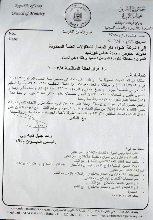 التعليم المسيحي في تللسقف/ نينوى وبمبلغ اجمالي