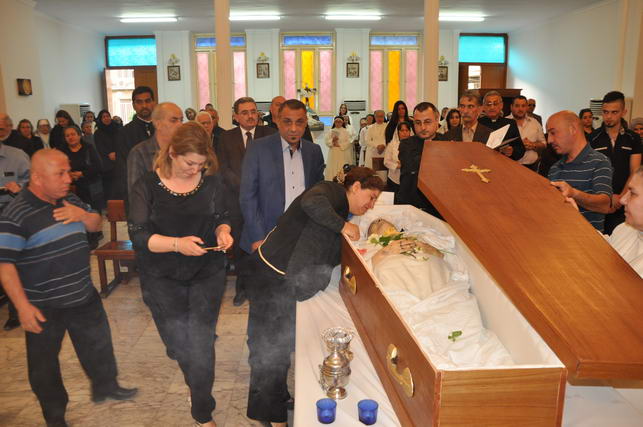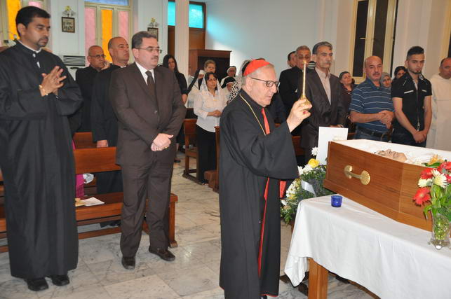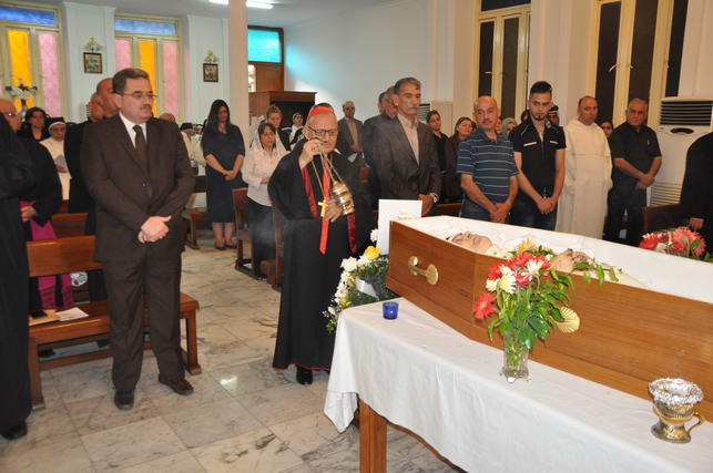 ترأس غبطة أبينا البطريرك مار لويس روفائيل الاول ساكو صلاة جناز انتقال الاخت مهدوخت كوركيس دخو من راهبات بنات مريم الكلدانيات الى الاخدار السماوية إثر نوبة قلبية حادة ومفاجئة مساء يوم الاثنين 13 نيسان 2015 في بغداد.