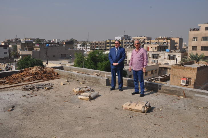 بعدها تفقد مشروع انشاء دار الضيافة التابع للمطرانية في كمب سارة الذي ينفذ وفق المناقصة 7/2013 بعقد رقم 2 في 16/1/2013 وبكلفة (686,910,000) دينار.