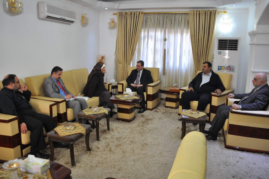 استقبل رئيس ديوان اوقاف الديانات المسيحية والايزيدية والصابئة المندائية السيد رعد جليل كجة جي في مكتبه صباح يوم الخميس 26/2/2015 عميدة معهد الادارة في الرصافة السيدة بتول جعفر علي.