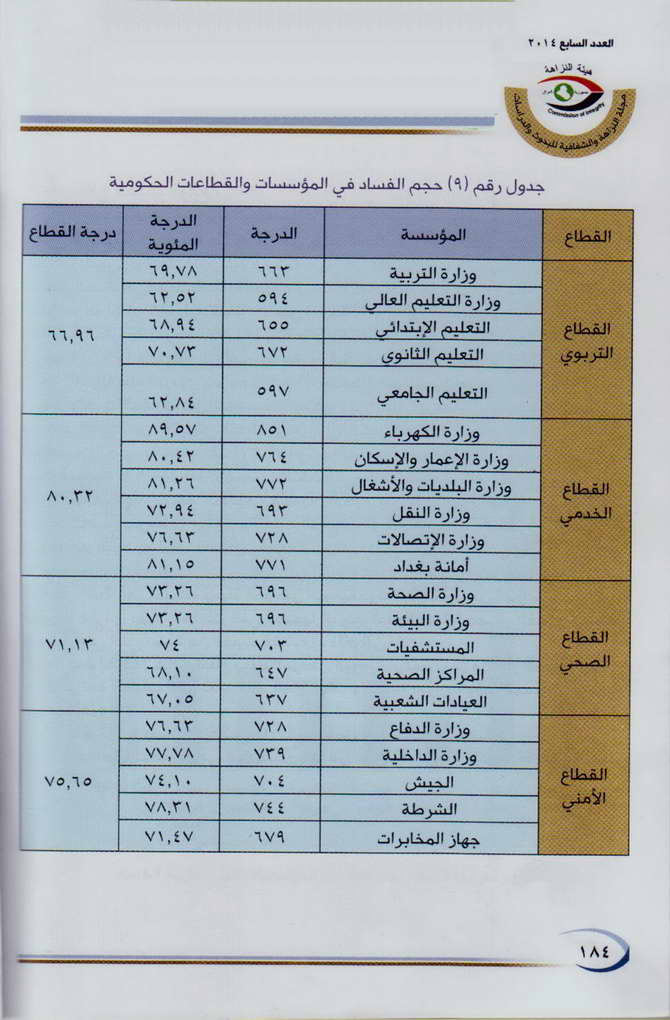 حجم الفساد في المؤسسات الحكومية، وجاء تسلسل ديوان اوقاف