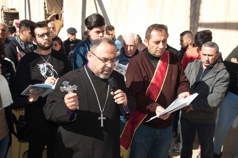 By a generous invitation full of love and hearts beating by cordiality ensuring the deep social coexistence among the components of Iraqi people, the citizens of Al- Habania, the oasis of religious and ethnic living components in harmony and familiarity, and security and local leaders and the administration of Koli Camp site with flowers and olive branches and trustfulness from them to their Christian brothers who lived for more than 90 passed years which their number reached in the mid of the fifties of the previous century to more than 800 family, received a delegation presided by Chor Bishop Augin Dawid and the priest Bihnam Al-Shamas Isshac when they reached to St. George the martyr church consisting of more than 250 believers from the citizens of the Orient Assyrian Churches in Baghdad on Friday 11 January 2019.