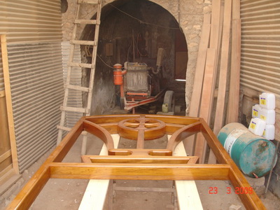 ايضا ورشة النجارة التي تقوم بتصنيع باب المطرانية العملاق حيث