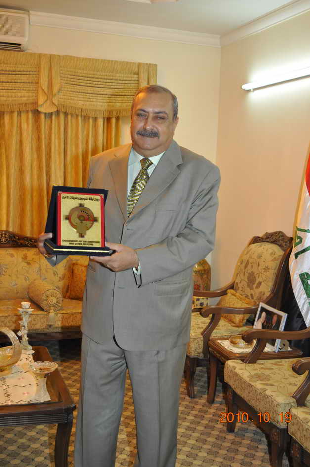الموافق 19 تشرين الاول 2010، قدم درع الديوان الى الأستاذ