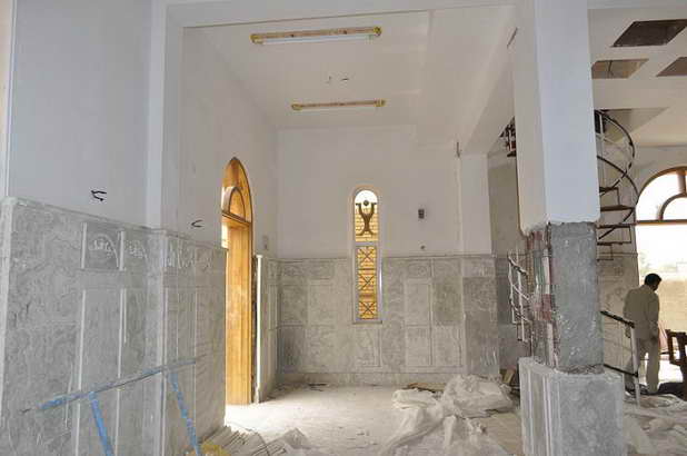الديوان على مراحل البناء والاعمار الجارية في الكنيسة