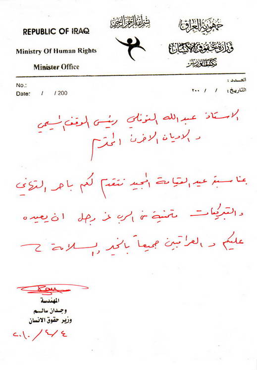 المهندسة وجدان ميخائيل وزير حقوق الانسان