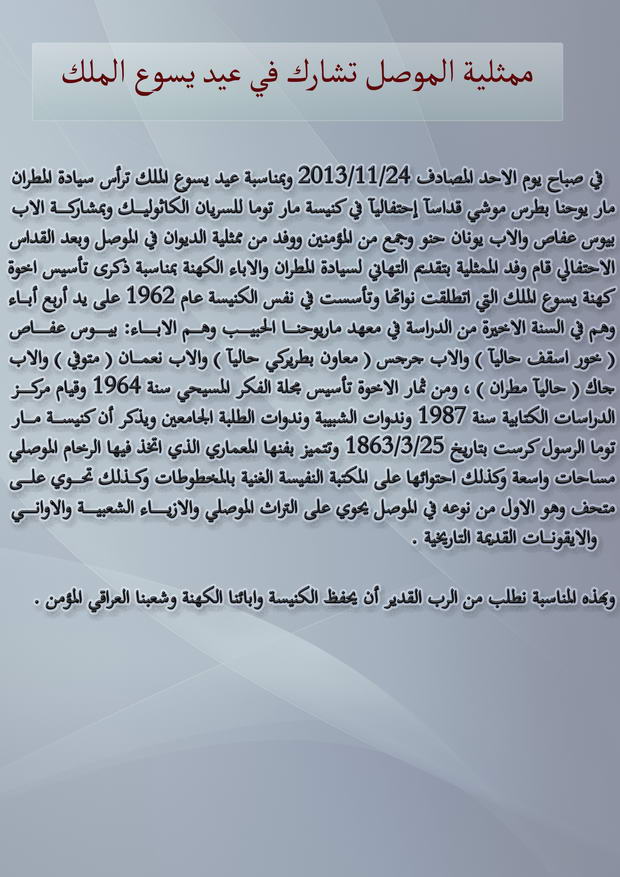 مشاركة ممثلية الموصل في عيد يسوع الملك