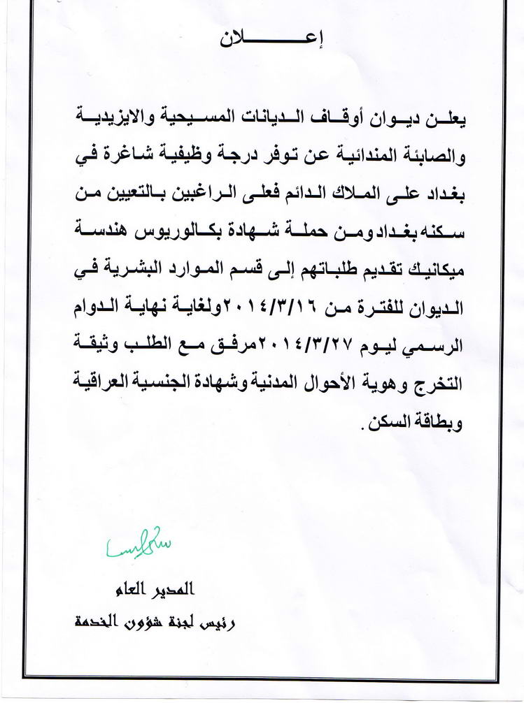 إعــــــــــــــــــــــــــــلان درجات وظيفية شاغرة