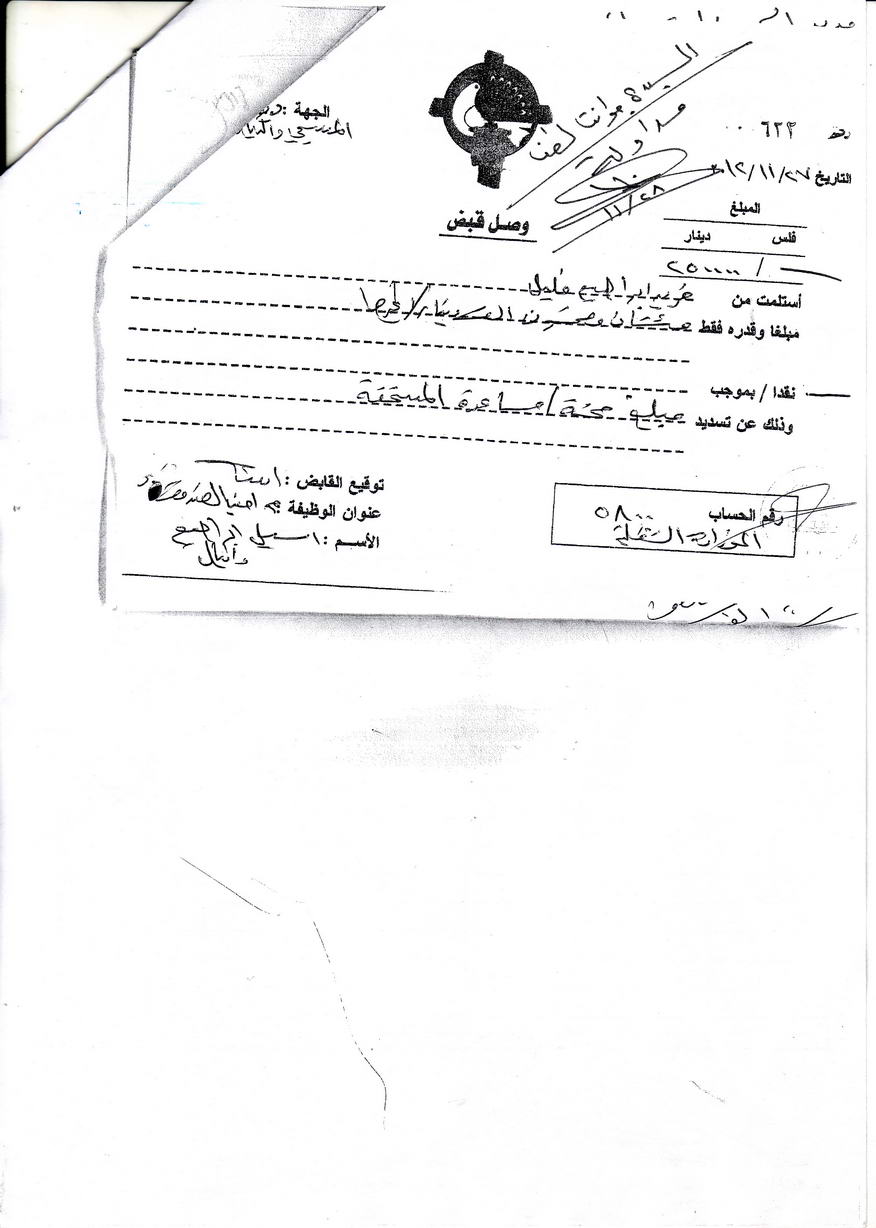 على السيد فريد ابراهيم خليل مراجعة قسم الحسابات في الديوان لأستلام مستحقاته البالغة (250,000 مائتان وخمسون الف دينار).