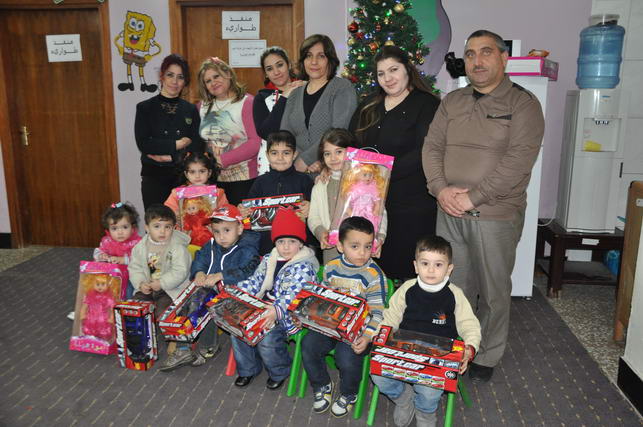 والخدمات يوم الثلاثاء 7/1/2014هدايا رمزية الى اطفال الحضانة