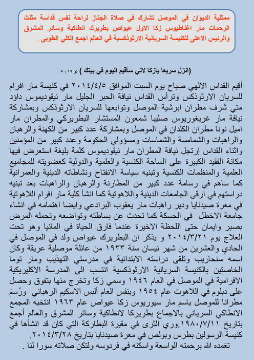 مثلث الرحمات مار اغناطيوس زكا الاول عيواص