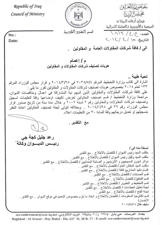 م/ اعمام هويات تصنيف شركات المقاولات والمقاولين