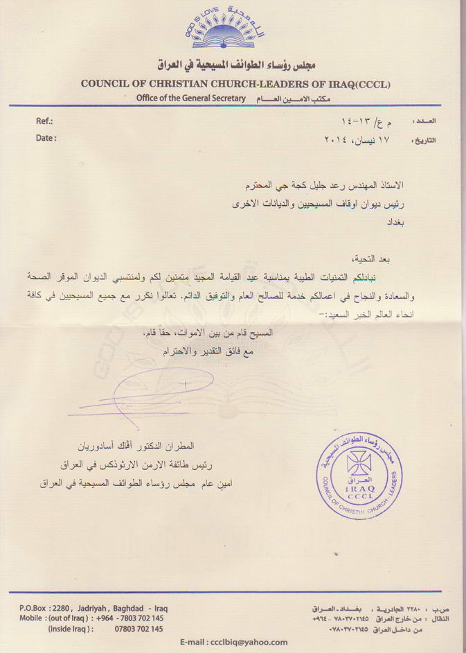 تهنئة من مجلس رؤساء الطوائف المسيحية