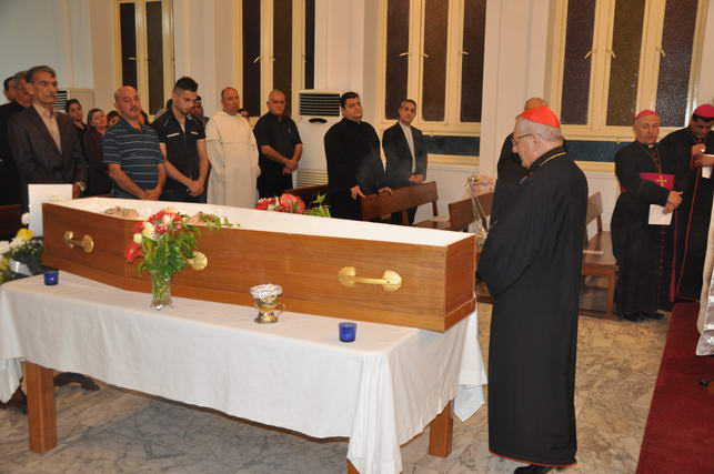 ترأس غبطة أبينا البطريرك مار لويس روفائيل الاول ساكو صلاة جناز انتقال الاخت مهدوخت كوركيس دخو من راهبات بنات مريم الكلدانيات الى الاخدار السماوية إثر نوبة قلبية حادة ومفاجئة مساء يوم الاثنين 13 نيسان 2015 في بغداد.