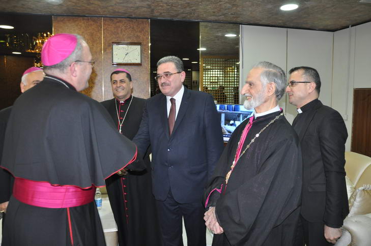 يلدو والمونسنيور جورج بانامثونديل/ مستشار السفارة الفاتيكانية في العراق والاب روبرت سعيد.