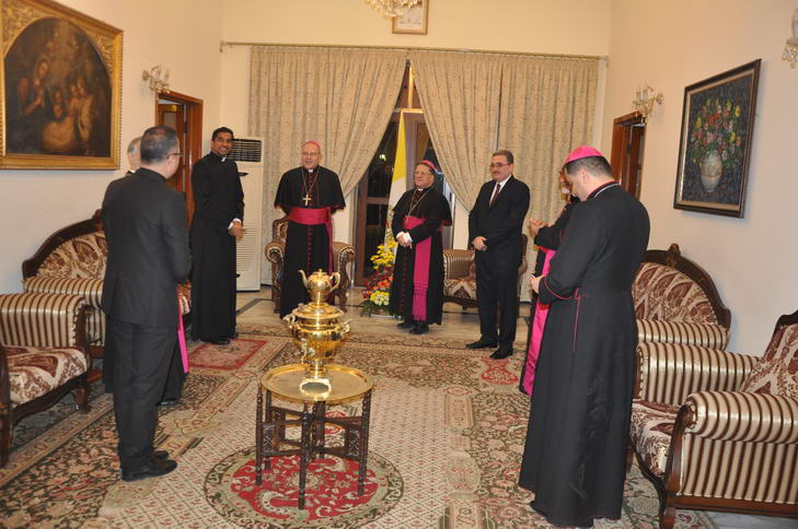 بعد ذلك انتقل الجميع الى مقر السفارة البابوية في بغداد .