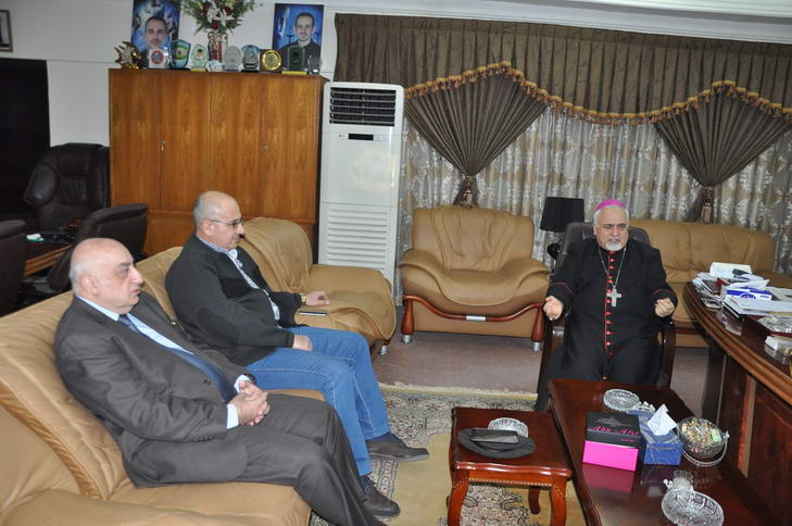 زار وفد مكون من رئيس الديوان السيد رعد كجةجي ومدير عام دائرة شؤون المسيحيين السيد نبيل الخوري ومعاون مدير عام الدائرة الهندسية ر.مهندسين .ا وميض ناجي جرجيس صباح الاربعاء 16 كانون الاول 2015 مطرانية السريان الكاثوليك حيث استقبلهم صاحب السيادة المطران مار افرام يوسف عبا رئيس أساقفة بغداد والنائب البطريركي على البصرة والخليج العربي للسريان الكاثوليك الجزيل الاحترام، وتحدث الطرفان خلال اللقاء عن الخدمات التي يقدمها الديوان الى الطائفة.