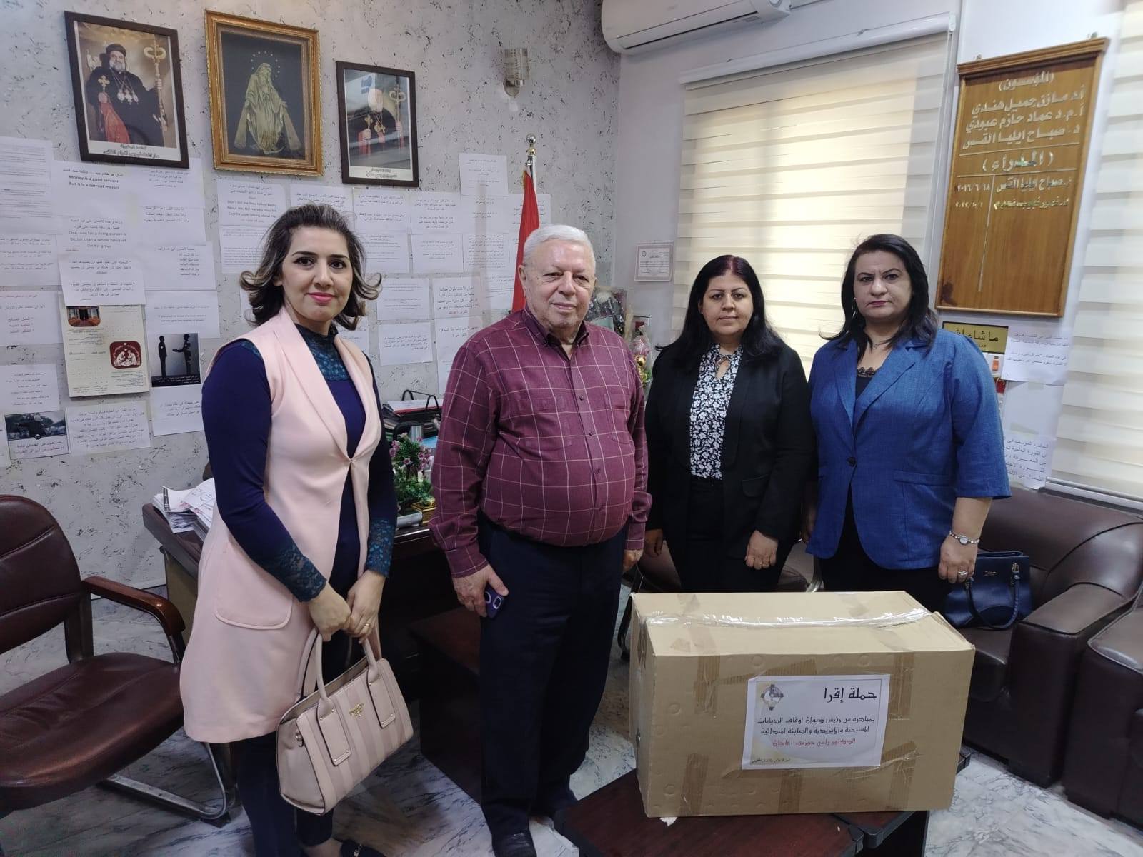برعاية معالي رئيس الديوان الدكتور رامي جوزيف آغاجان، وتنفيذاً لتوجيهات مديرة مكتبه المهندسة بلسم عامر ميخائيل، قامت لجنة جرد الكتب التابعة للديوان التي ضمت السيدة رشا سالم داود والسيدة فادية عصمت داود والانسة عبير فاروق نعوم، اليوم الأربعاء ١٩ تشرين الثاني ٢٠٢٥، بحملة ميدانية لتوزيع كميات من الكتب والمراجع العلمية والأدبية على عدد من المدارس، ضمن حملة "إقرأ" الرامية إلى دعم الحركة العلمية والثقافية لطلبة المدارس.
