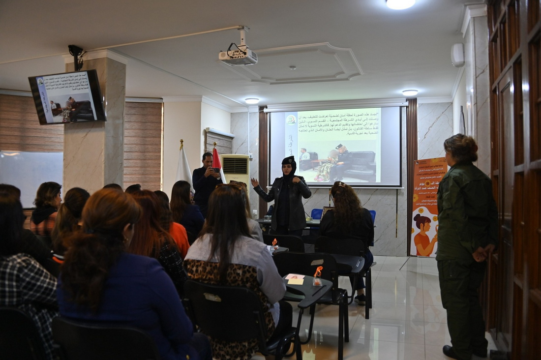 قدمت المحاضرة المقدم بسمة مزعل هاشم من الشرطة المجتمعية، حيث تناولت أشكال العنف الموجه ضد المرأة وسبل الحماية والدعم القانوني والاجتماعي المتاحة للناجيات. وشهدت الفعالية تفاعلاً من الحضور، تضمن مداخلات وطرحاً للأسئلة حول الآليات العملية للإبلاغ والتوجيه.