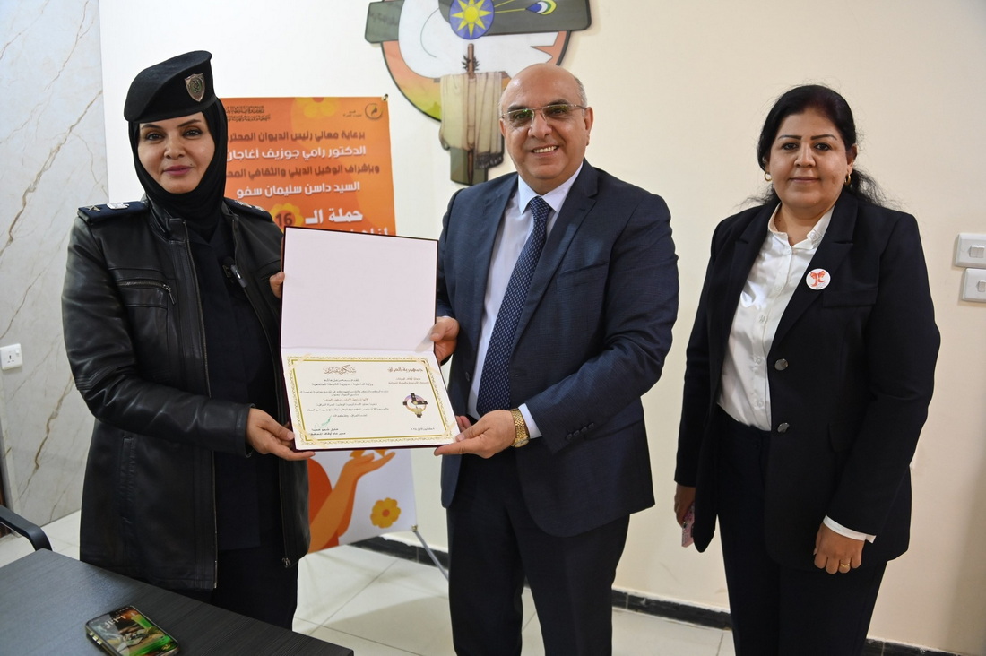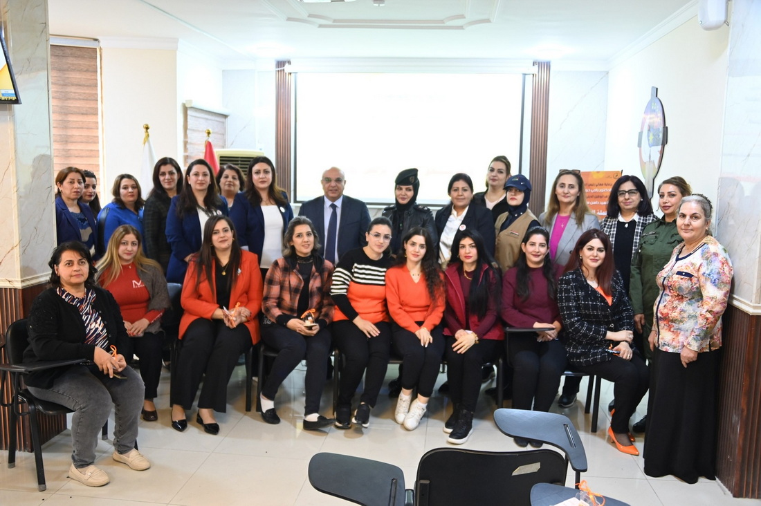 وجاءت الفعالية تنفيذاً لمحور حماية المرأة ومواجهة العنف ضمن الاستراتيجية الوطنية للمرأة العراقية، بحضور مدير عام الدائرة الإدارية والمالية السيد نوفاك آرام مامبريه.