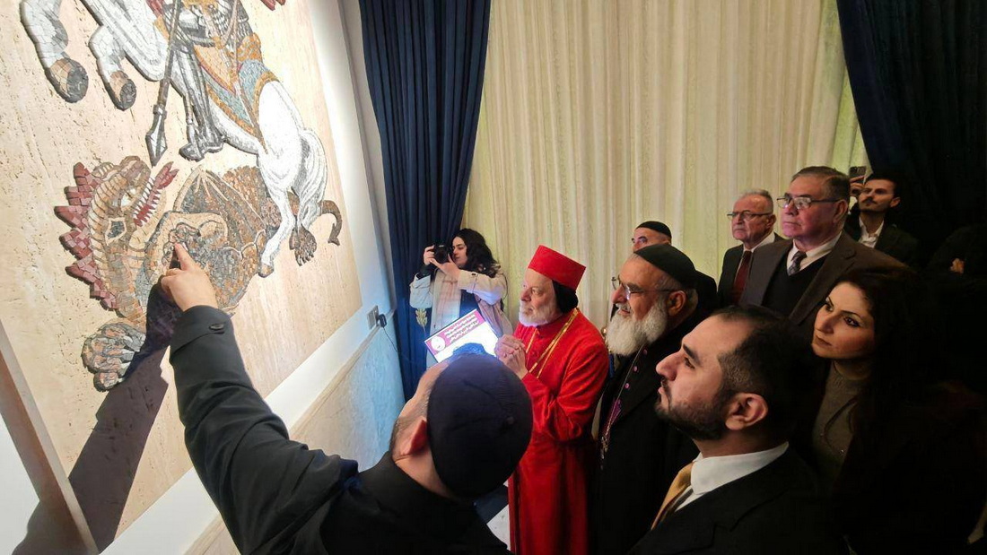 بدعوة كريمة من راعي أبرشية مار متى للسريان الارثوذكس سيادة المطران موسى الشماني، شارك معالي رئيس الديوان، يوم الخميس 18 كانون الأول 2025، وكان في استقباله الآباء الخوارنة والكهنة وأعضاء المجلس السرياني، وشارك معاليه في ازالة الستار عن فسيفساء مار كيوركيس، أنجزتها أياد من شباب وشابات الكنيسة، في إطار احياء أيام الميلاد.