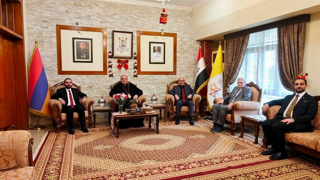 ترأس معالي رئيس الديوان الدكتور رامي جوزيف آغاجان، اليوم الاثنين 29 كانون الأول 2025، وفداً لزيارة سيادة المطران مار نرسيس زاباريان، رئيس طائفة الأرمن الكاثوليك في العراق، وذلك لتقديم التبريكات بمناسبة أعياد الميلاد المجيدة وحلول رأس السنة الميلادية الجديدة، ضم الوفد مدير عام الدائرة القانونية السيد ادسن وليم كليانا ومدير عام الدائرة الهندسية السيد وميض ناجي جرجيس ومدير عام شؤون الصابئة المندائيين السيد رأفت جاسب مهاوي.