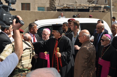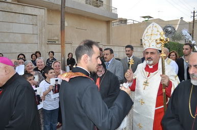 مستقبيله الى مقر مطرانية السريان الكاثوليك في بغداد، حيث