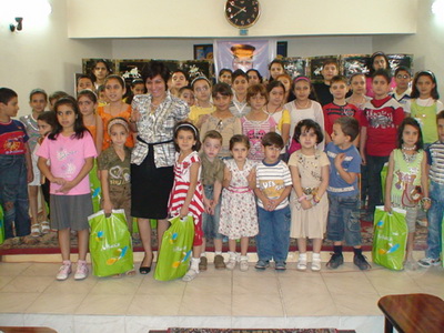 الزائر بأطفال يحملون الزهور وقدم الى الوفد التمر واللبن